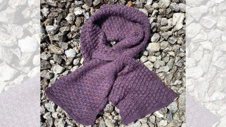 I love to work with alpaca because it is super soft so it’s great to wear against the skin – in this case the neck. It’s also super warm so a little fabric goes a long way. Use the keyhole opening to adjust this short scarf around your neck to adjust your temperature when you are out in the weather!
