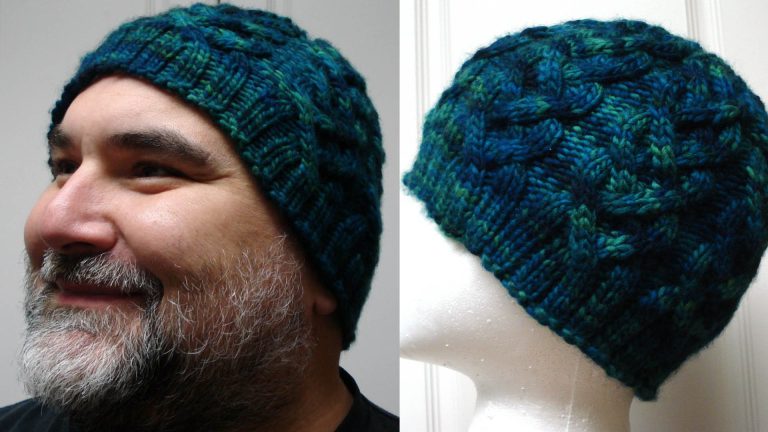 The pattern includes both written and charted instructions, and while the cable motif looks intricate, it’s surprisingly straightforward to knit. The cables continue all the way to the crown and are seamlessly incorporated into the decreases. A cable needle is listed, but this hat is an excellent opportunity to practice cabling without one.