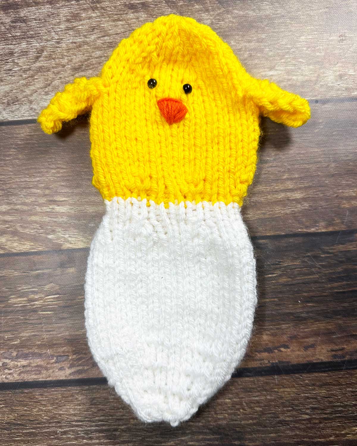 Turn piece inside out and weave in ends. Turn right-side out and continue chick as follows: